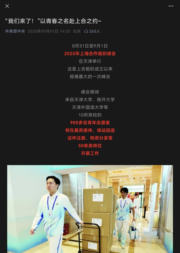 在上合组织天津峰会盛大启幕之际一系列彰显青年志愿者风貌的作品接连亮相