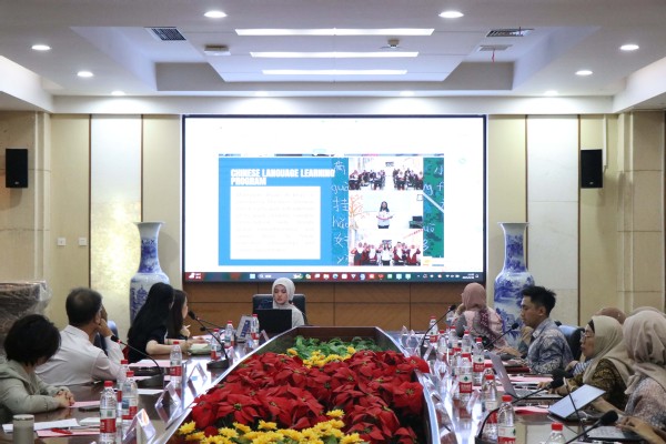 帕查查兰大学汉语系安纳士老师结合教学实际,提出了印尼当前汉语教学中面临的具体问题,如语音识别准确性、文化语境融入、汉语教师不足等问题,希望与中方共同探讨解决方案。印尼代表团同时表达了深化合作愿景——希望进一步加强与天外的合作,除持续推动教师来华进行语言文化培训外,期待拓展学生交流渠道,欢迎天外学生赴印尼实习支教,也希望更多印尼学生来华攻读学位。