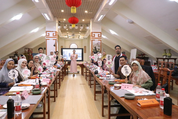 27日上午,文化体验活动由国际传媒学院副院长李楠主持,国际传媒学院教师陶鹏现场讲解并示范书法与中国画技艺,印尼团组教师执笔创作,在笔墨丹青中深化对中国文化的理解与喜爱,现场气氛热烈融洽。随后举行的闭幕式上,双方总结了两天的交流成果,为本次研讨画上圆满的句号。