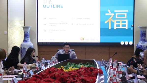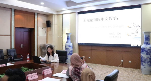 研讨环节中,国际传媒学院肖克曦、孔艳、洪畅、李旭、侯平教师分享了人工智能时代下,AI赋能教学、教师角色转型等汉语教育实践经验。印尼教育工作者代表积极参与交流,围绕“AI如何助力汉语教学”展开深入分享,普拉维贾亚大学汉语系外事专员杨娜,详细介绍了该校利用AI开展汉语教学的具体实践,包括智能教学平台应用、个性化学习方案设计等。