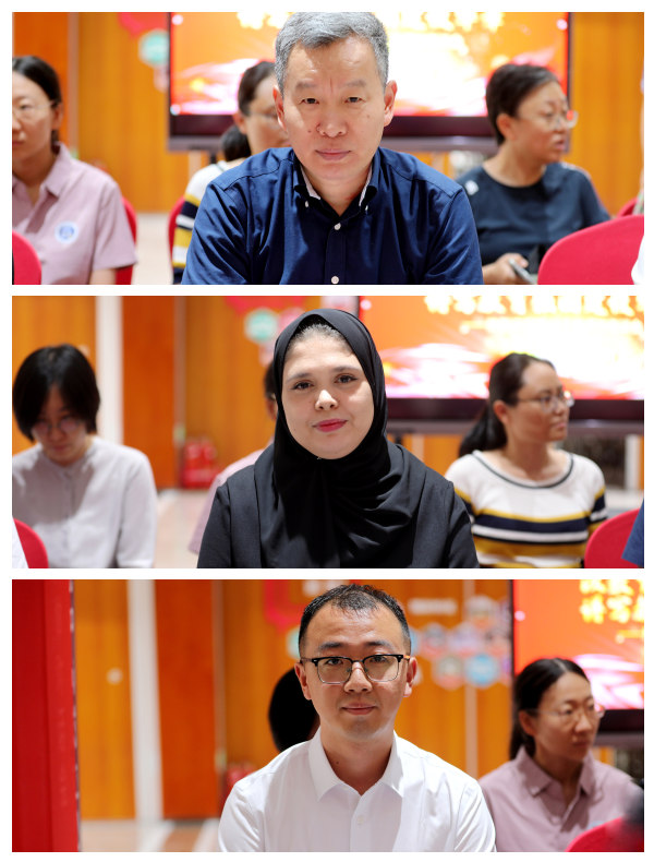 春风化雨育桃李,立德树人铸师魂。会上,日语学院青年教师李玥、马克思主义学院教师高立军、国际传媒学院教授潘道正、欧洲语言文化学院院长王文倩、英语学院青年教师李兰珍、教务处干部尹盼盼、国别和区域研究院院长郑继永、亚非语学院的阿尔及利亚籍外教李曼丽、国际商学院新入职教师邵磊、高级翻译学院教授佟晓梅等十位老师先后进行发言。各位教师代表从不同角度分享了自己在教育教学、科学研究、学科建设、上合峰会服务和管理育人的感受与心路历程,纷纷表示一定会弘扬践行教育家精神,以赤诚之心、奉献之心、仁爱之心投身教育事业,强化铸魂意识,求索为师之道,秉承匠心精神,争当师者模范。