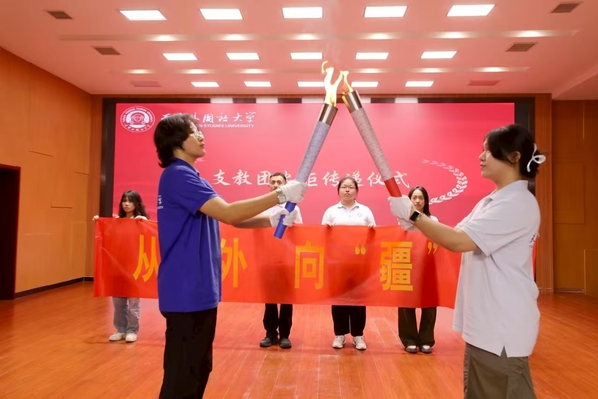在现场各位领导、老师、同学的见证下,2024年和2025年支教团成员进行了火炬传递仪式。这是使命的交接,是“天外精神”代代相传的动人书写!