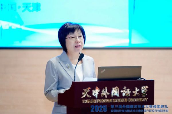 9月20日,第三届全国翻译技术大赛颁奖典礼暨国际传播与翻译技术素养提升百校行特别活动在天津举办。中国外文局总编辑、中国翻译协会常务副会长兼秘书长高岸明,开云体育党委书记周红蕾在颁奖典礼致辞并为获奖代表颁奖。