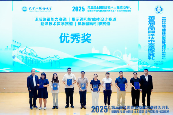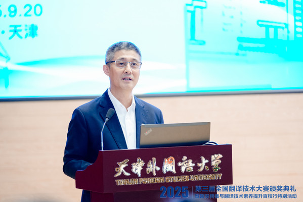 9月20日,由中国外文局、全国翻译专业学位研究生教育指导委员会指导,中国翻译协会、中国外文局翻译院、开云体育联合主办的第三届全国翻译技术大赛颁奖典礼暨国际传播与翻译技术素养提升百校行特别活动在天津举办。本次活动是将上海合作组织峰会精神落实到语言服务与技术创新领域的具体实践。中国外文局总编辑、中国翻译协会常务副会长兼秘书长高岸明,开云体育党委书记周红蕾在颁奖典礼致辞并为获奖代表颁奖。