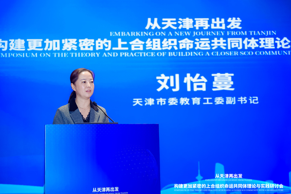 刘怡蔓表,上合组织命运共同体研究中心入选中国担任上合组织轮值主席国工作成果清单,是天津市高等教育主动对接国家战略,聚焦国际问题研究,推动产学研用结合取得的又一重大成果。希望上合组织命运共同体研究中心能够坚持高站位谋划、高标准建设、高质量发展,立足学术前沿,深化理论创新聚焦现实需求,强化资政建言融通中外文化,促进文明对话创新培养模式,培育时代新人为服务国家总体外交和开放大局贡献力量
