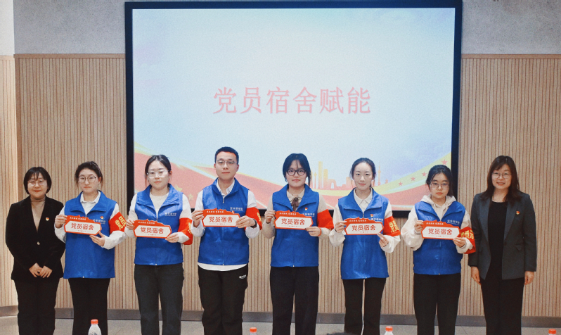 校党委组织部副部长史宁与学院党总支书记张海梅为党员宿舍代表颁发“党员宿舍”门贴,推动形成党员示范效应。