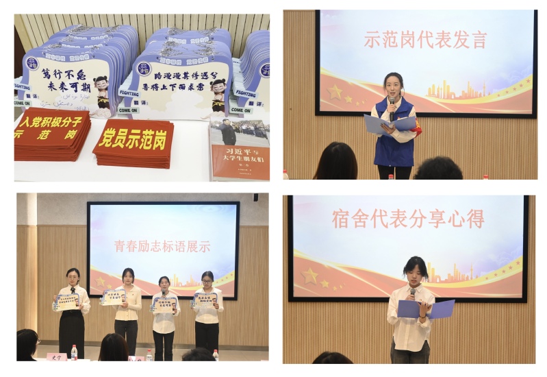 现场“青春励志标语展区”亮点突出,结合亚非语专业特色的标语设计实现“文化育人与专业赋能”双提升。余文迪、杨佳、廉灿、和浍源等宿舍代表分享了标语选择的初心与成长感悟。党员示范岗代表宋琪琪承诺将在思想引领、学业辅导、心理帮扶、生活服务上主动作为,诠释党员担当;宿舍学生代表于涵表示将从“治理旁观者”转变为“共建合伙人”,携手打造互助氛围。