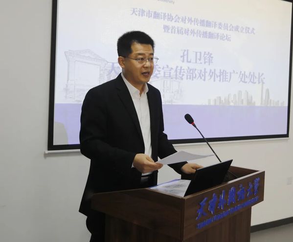 孔卫锋在讲话中指出,以委员会成员为主要构成的天津市翻译队伍在达沃斯论坛、上合组织峰会等重大主场外交活动中,出色完成了口笔译任务,得到外交部等中央部门的充分肯定。希望委员会今后聚焦天津城市品牌,深度参与重大外宣项目,推动翻译与传播深度融合。