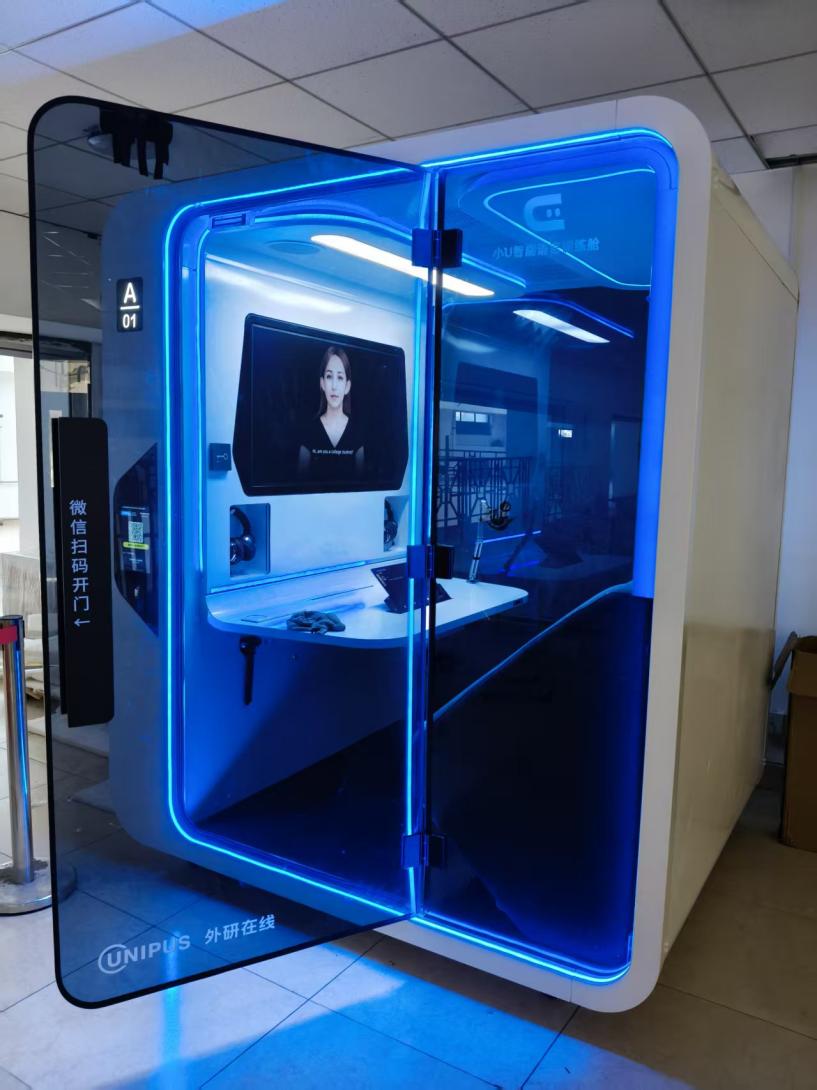 AI虚拟同传箱设备,构建一个高度仿真的数字人交互口语、听力实训空间,通过集成智能翻译、语言训练技术,使学生能在模拟的复杂多语言场景中进行实战训练,提升学生在语言学习中的现场应变与专业实践能力。