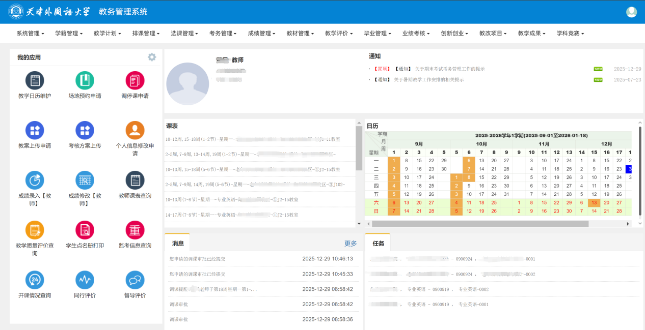 新一代智慧教学管理服务平台以“数据驱动、流程优化、服务升级”为目标,深度融合大数据、人工智能等前沿信息技术,打通教学管理各环节的数据壁垒,构建覆盖学籍管理、排课选课、教学运行、质量评估、毕业审核、创新创业、学科竞赛、教改项目、教材建设、业绩考核等业务的全流程数字化教务管理体系。通过打造一体化、智能化的电脑端、手机端服务门户,为教师、学生、管理人员提供个性化、便捷化的教学管理服务,全面提升学校教学管理的智能化水平。
