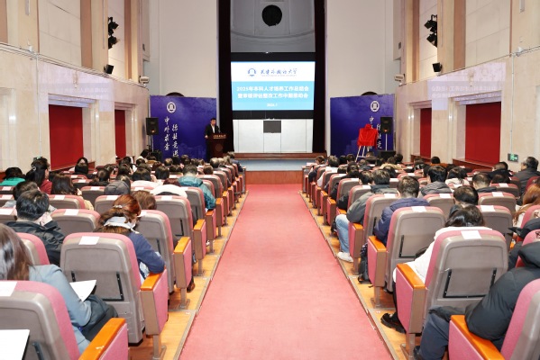为深入学习贯彻党的二十届四中全会精神及全国教育工作会议精神,全面落实教育强国行动计划部署要求,系统总结2025年本科人才培养工作成效,扎实推进本科教育教学审核评估整改落地,1月21日上午,天外召开2025年度本科人才培养工作总结会暨审核评估整改中期推动会。校党委书记、校长李迎迎,校党委副书记胡志刚,副校长冯鹏出席会议。各本科教学单位主要负责人,审核评估整改牵头与配合单位负责人及教务处、教育技术与实验室管理中心全体人员参会。