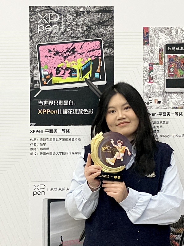 全国大学生广告艺术大赛由教育部高等教育司指导、中国高等教育学会广告教育专业委员会主办,是目前全国规模最大、参与院校最广、作品水准最高的国家级大学生广告赛事之一。本届大赛吸引了全国众多高校的优秀学子踊跃参与,海量优质作品同台竞技。颜宁在动画艺术系教师郑璐璐的指导下,凭借独特新颖的创意构思、精准到位的策略定位以及高水平的视觉呈现,赢得了评审专家的一致高度认可。其作品《流淌在黑白世界里的彩色奇迹》将品牌理念与艺术表达巧妙融合,呈现出鲜明的创作风格与深刻的视觉感染力。
