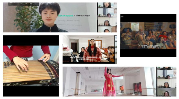 尤为亮眼的是“新年才艺荟萃”环节。在中国师生的精心组织下,七项形式多样的“创意礼物”通过屏幕在云端传递:从王美琪同学的深情歌曲《Я бы сказал тебе много хорошего》,到麦迪乃同学的动人舞蹈《恋》,从丁心语同学唤起怀旧情怀的《Старое доброе время》,到李秋雨同学指尖流淌出的古筝名曲《琵琶语》,再到解嘉怡同学演唱的经典俄罗斯民歌《Уральская рябинушка》,以及金美希同学的《Белая кошка》和李义恒同学活力四射的《ДаДаДа》。这些节目不仅展现了开云体育学子卓越的艺术才华与语言能力,更传递了真挚的新年祝福。