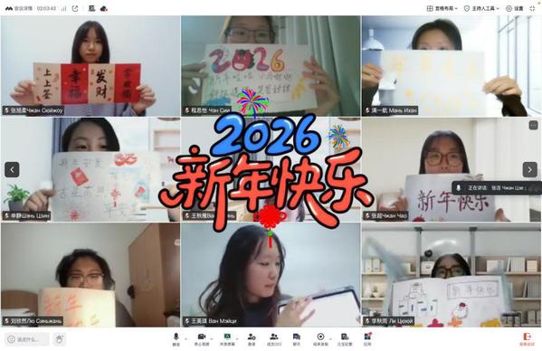 活动最后,所有参与者手持精心准备、写有中俄双语新年祝福的创意标语牌,在云端合影,留下了2026年开年最珍贵的国际友谊定格。整场活动流程紧凑、内容充实、互动热烈,圆满实现了在中俄文化年框架下促进青年交流、深化友好情谊的预期目标。