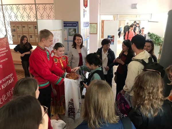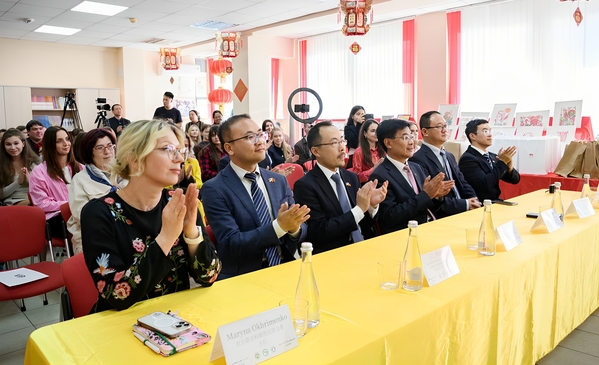 近日,伏尔加格勒国立师范大学孔子学院(以下简称“伏师大孔院”)携中华文化首次走进伏尔加斯基第一中学,成功举办“中文日”主题活动。活动涵盖文化展示、合作洽谈与历史教育等多维度内容,进一步深化了中俄人文交流与教育合作。伏尔加斯基第一中学十分重视两校的首次交流,以俄罗斯迎接客人的最高礼仪“迎客面包与盐”欢迎伏师大孔院团队。活动在该校校长殷娜·巴拜策娃的欢迎声中拉开帷幕。她表示,中文是该校六年级以上学生的必修课程,在平时的学习过程中学生们就表现出对中文的极大热情,相信今天的活动不仅能加深学生们对中文的热爱,更能让学生们亲身触摸中国文化的温度。她表示,此次活动为两校首次合作,未来将持续保持与孔院的交流,不断深化两校合作。伏师大孔院中方院长宁怀颖对该校的热情欢迎表达感谢。宁院长指出,孔子学院一直致力于推广中文教育,传播中华优秀文化,希望今天的活动能更加激发学生们探索中文世界的热情,为两校日后的深厚合作打下坚实基础。未来两校将探索更多元的合作方式,在汉语教学、师生互访等领域深化协作。宁院长代表孔院向学校捐赠了《习近平谈治国理政》等双语书籍及中文教辅材料,助力该校中文课堂建设。本次活动精心设置中国地理