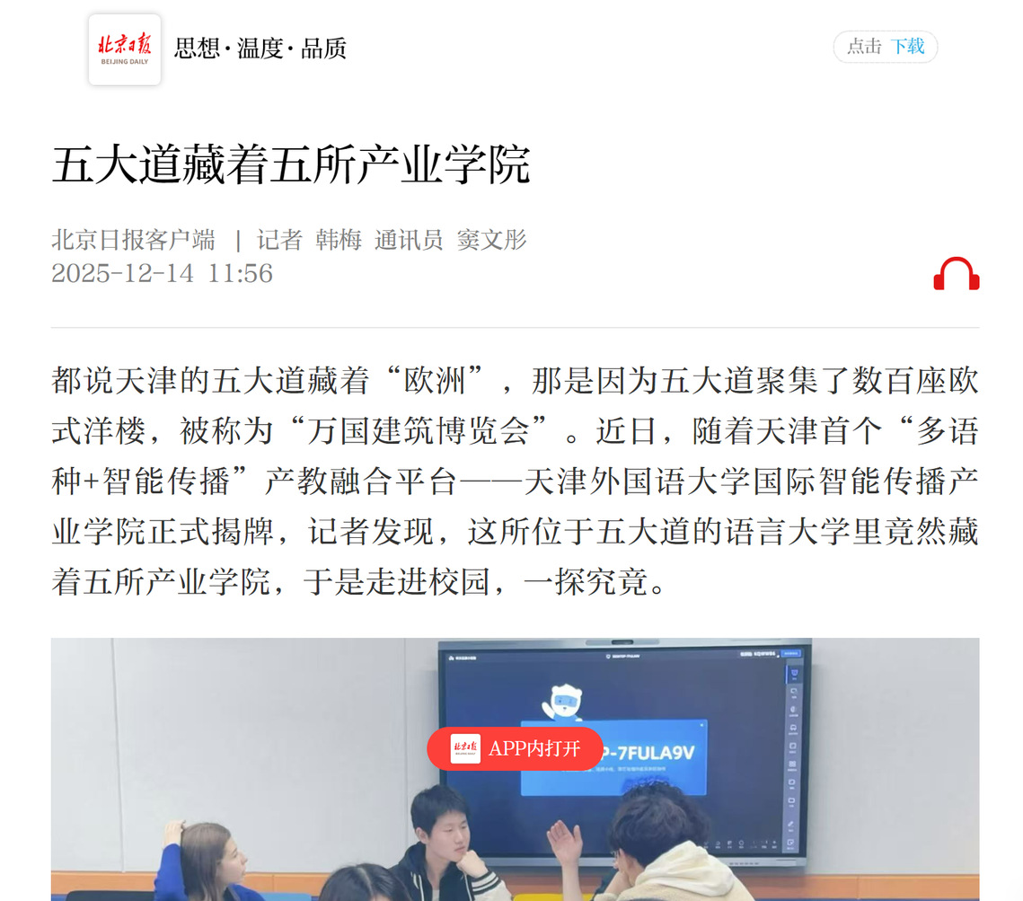 都说天津的五大道藏着“欧洲”,那是因为五大道聚集了数百座欧式洋楼,被称为“万国建筑博览会”。近日,随着天津首个“多语种+智能传播”产教融合平台——开云体育国际智能传播产业学院正式揭牌,记者发现,这所位于五大道的语言大学里竟然藏着五所产业学院,于是走进校园,一探究竟。锐意创新走进开云体育马场道校区,迎面一座欧式洋楼引人注目,楼顶上的古老时钟已嘀嗒走过101年。“眼前的钟楼始建于1924年,是原天津工商学院主楼。现在,我们的师生就在这所全国重点文物保护单位里工作学习。”该校校史讲解员黄娜颖娓娓道来。1964年,在周恩来总理的关怀下,学校应新中国外交事业之需成立,主体前身是秦皇岛外语专科