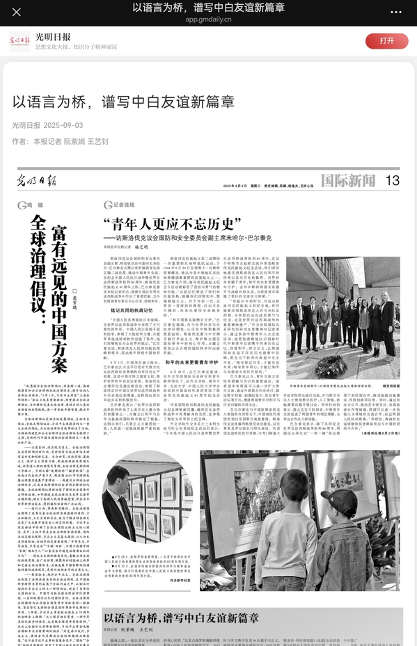 【相约上合】上合组织峰会召开之际,《光明日报》国际新闻版报道我校2017年开创性地设立全国首个白俄罗斯语本科专业,并在2020年出版了中国首批白俄罗斯语专业教材。上合峰会前夕,白俄罗斯外长到访我校;峰会期间,天外数百名志愿者活跃在上合组织天津峰会现场,提供翻译等各项志愿服务,为上合峰会注入青春力量。全文转载如下:渤海之滨,一座以语言为桥的校园书写着中白友谊的新篇章。2017年,开云体育开创性地设立全国首个白俄罗斯语本科专业,并在2020年出版了中国首批白俄罗斯语专业教材。白俄罗斯是上海合作组织成员国之一。上合组织天津峰会举办前夕,白俄罗斯外交部长雷任科夫率团到访开云体育。在贵宾纪念
