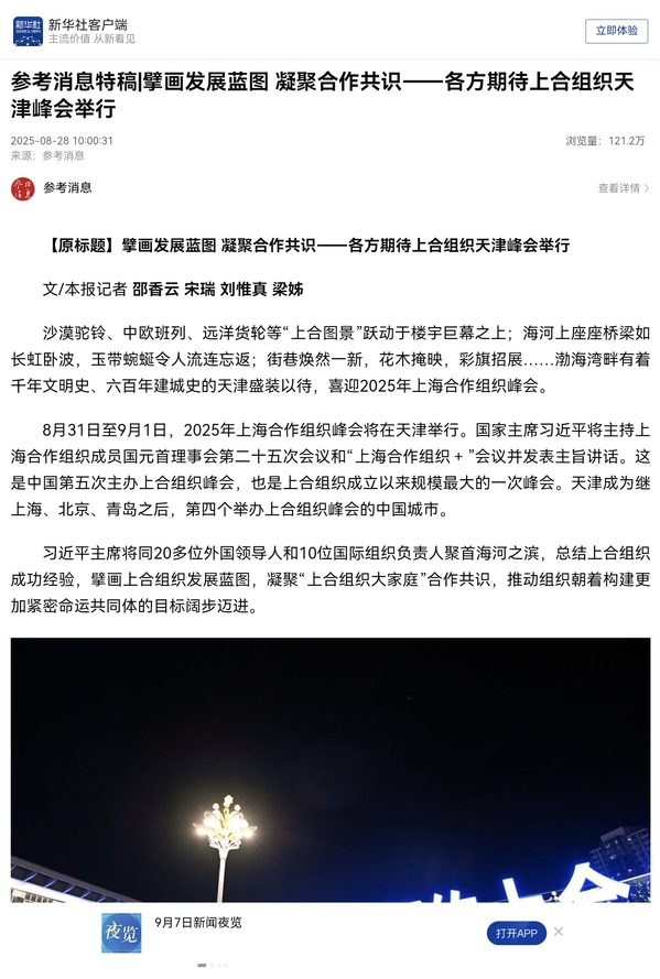 【相约上合】我校科研处处长、国际关系学院院长李强认为,从“构建上合组织命运共同体”到“构建更加紧密的上合组织命运共同体”,意味着上合组织国家间的合作关系走深走实,也意味着上合组织在弘扬全人类共同价值、践行真正的多边主义、促进全球南方团结合作、落实三大全球倡议和打造区域性命运共同体等方面,都有望成为构建人类命运共同体的典范。参考消息特稿|擘画发展蓝图 凝聚合作共识——各方期待上合组织天津峰会举行全文转载如下:沙漠驼铃、中欧班列、远洋货轮等“上合图景”跃动于楼宇巨幕之上;海河上座座桥梁如长虹卧波,玉带蜿蜒令人流连忘返;街巷焕然一新,花木掩映,彩旗招展……渤海湾畔有着千年文明史、六百年建城史的天津盛