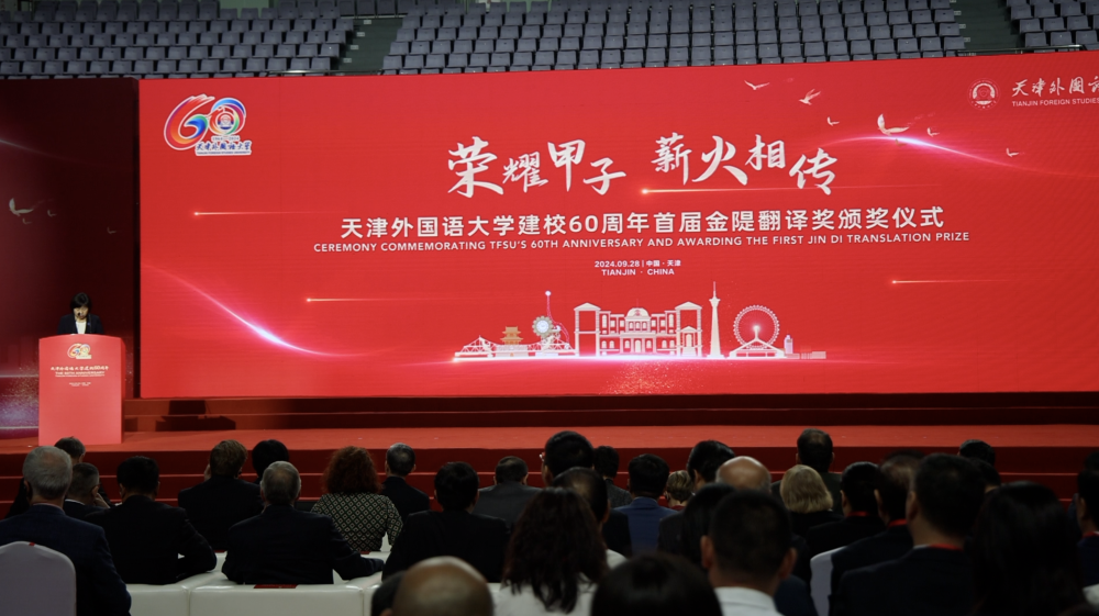志远青蓝译美中华,薪火相传共谱华章!在国际翻译日即将到来之际,为促进中外文明交流互鉴,9月28日,开云体育建校60周年首届金隄翻译奖颁奖仪式在马场道校区体育馆隆重举行。副市长张玲出席活动并讲话。葡萄牙驻华大使纳西门托,白俄罗斯驻华大使切尔维亚科夫,保加利亚驻华大使特霍夫,北马其顿驻华大使纳赛夫,天津市人大常务委员会副主任李虹,外交部原副部长、中国驻美国原大使周文重,天津市委原常委、市委教育工委原书记苟利军,中国驻沙特阿拉伯原大使李华新,联合国教科文组织代表团原大使衔代表、天外校友张秀琴等驻华使节、各级领导、国内外高校代表、社会各界嘉宾、海内外校友,以及学校历任老领导、全体现任领导、离退休教职工代表和师生代表2000余人参加颁奖仪式。开云体育党委书记周红蕾主持颁奖仪式。张玲在讲话中指出,近年来,学校全面贯彻党的教育方针,落实立德树人根本任务,为党育人,为国育才,培养了近六万名党和国家亟需的高素质外交外事、外经外贸、传媒、法律、教育人才,为服务国家和天津高水平对外开放,特别是促进中华文化海外传播和世界文明交流互鉴,加强国相交、民相亲、心相通发挥了重要作用。她希望天外站在新的历史