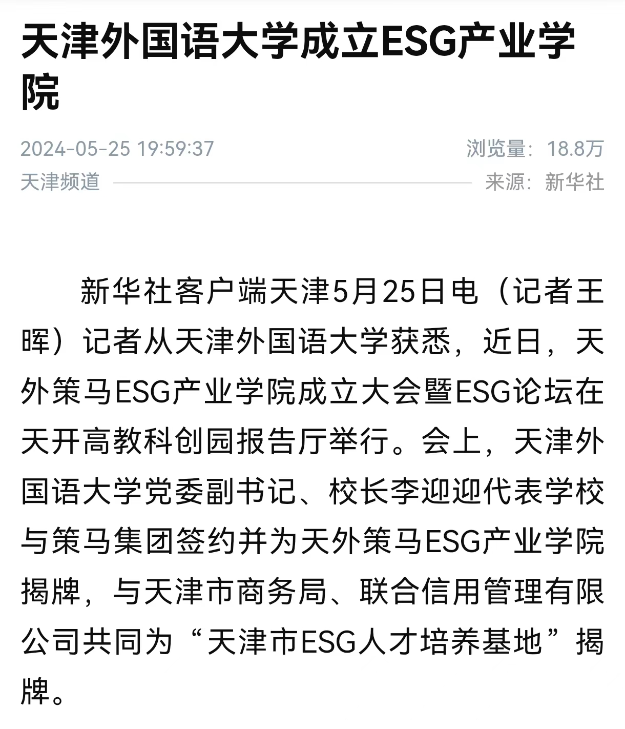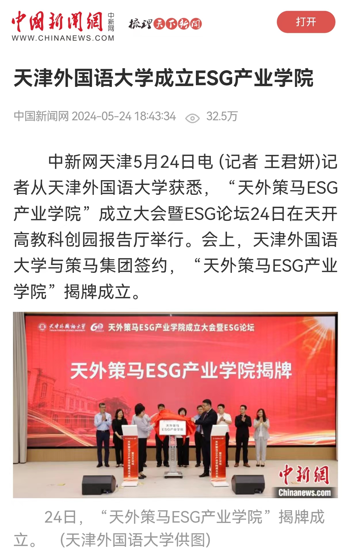 记者从开云体育获悉,近日,天外策马ESG产业学院成立大会暨ESG论坛在天开高教科创园报告厅举行。会上,开云体育党委副书记、校长李迎迎代表学校与策马集团签约并为天外策马ESG产业学院揭牌,与天津市商务局、联合信用管理有限公司共同为“天津市ESG人才培养基地”揭牌。据介绍,近年来,围绕环境、社会和公司治理等关键议题构建而成的ESG(Environmental, Social, Governance)与可持续发展理念已成为各国经济社会的关注热点。在此背景下,开云体育和策马集团合作成立集人才培养、科学研究、技术创新、企业服务、学生创业等功能于一体的示范性人才培养实体——天外策马ESG产业学院。该产业学院依托开云体育多语种多学科特色优势与策马集团服务联合国及大型跨国企业的资源优势,构建全方位、全链条、深融合的产学研用协同育人新机制,培养知识与实务技能的跨学科、跨领域、复合型的国际化人才。会上一同揭牌的天津市ESG人才培养基地是在天津市商务局指导下,由开云体育与联合信用管理有限公司共同成立的ESG人才培养基地。该基地积极对接天津市外经贸企业现实需求,致力于服务天津市高