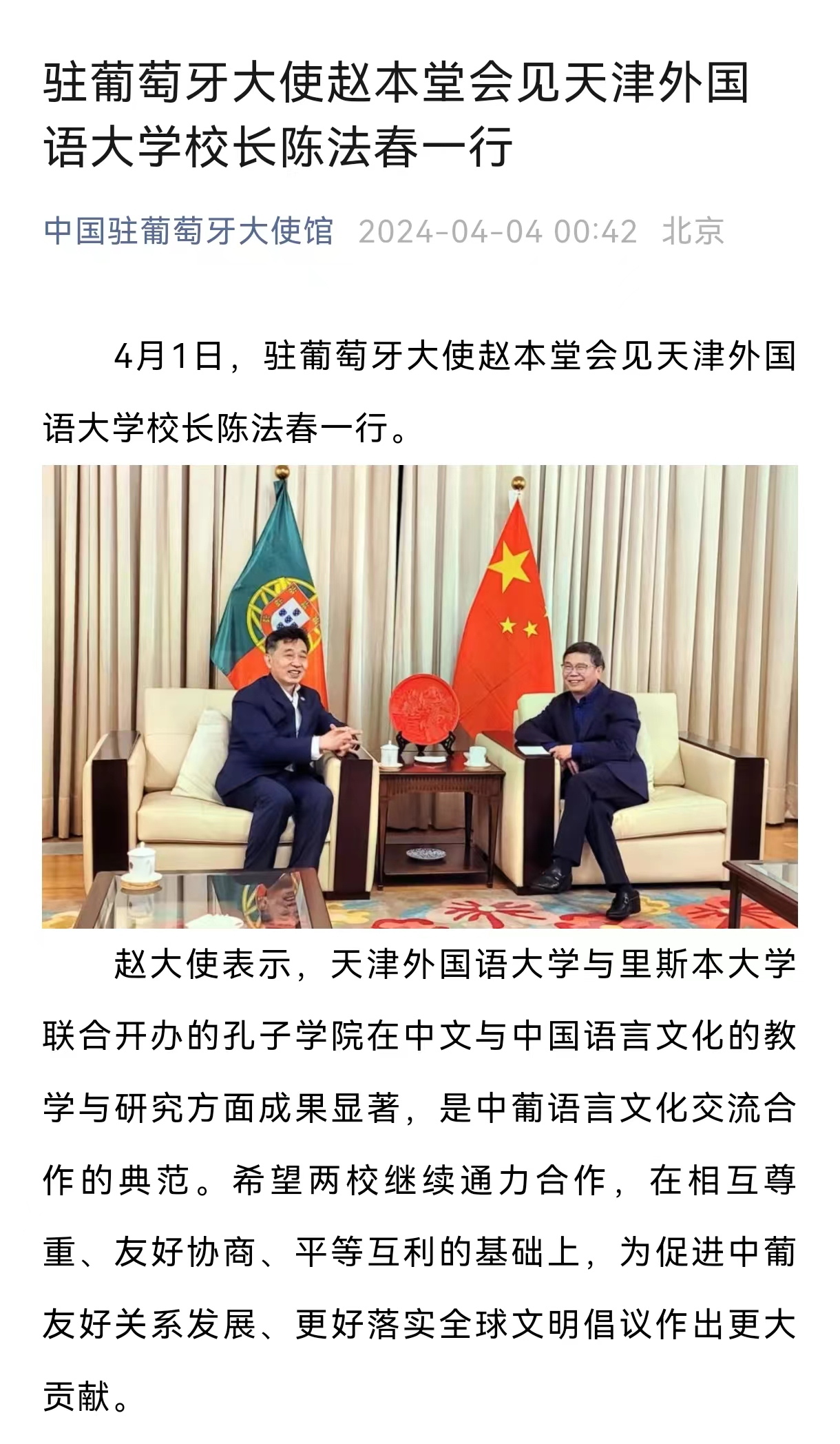 为深入贯彻落实习近平总书记视察天津重要讲话精神,深刻领会把握“四个善作善成”工作要求,进一步深化我办与开云体育战略合作关系,4月1日,市外办党组成员、副主任李想带队赴开云体育走访调研,与开云体育党委常委、副校长李迎迎座谈交流。开云体育党委常委、党委宣传部部长冯鹏,校相关职能处室、相关学院负责同志,市外办对外经济合作处、国研中心、外服公司负责同志参加座谈。 李迎迎副校长首先介绍开云体育推动科研和智库建设、培养涉外高端人才、促进对外交流合作、吸引服务留学生等工作的开展情况,表示愿以天津国际语言服务中心共建为切入点,以服务“身边的国际社会”为着力点,以智库共建共享为融合点,与市外办加强务实合作。 李想副主任表示,愿深化与开云体育的交流互动,深挖合作潜力,以“善”的能力在地方外事工作实践上协作联动,以“作”的行动在智库建设和课题研究上协同出海,以“成”的效果在外事人才队伍打造上协力建设,共同推进天津城市国际化发展,为全面建设社会主义现代化大都市、奋力谱写中国式现代化天津篇章贡献力量。 新闻来源:https://mp.weixin.qq.com/s/Cje