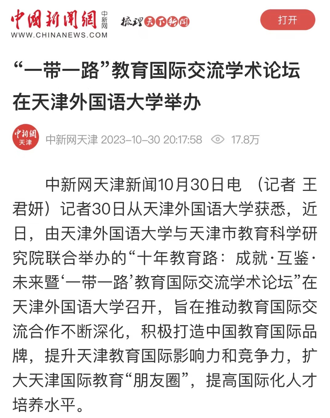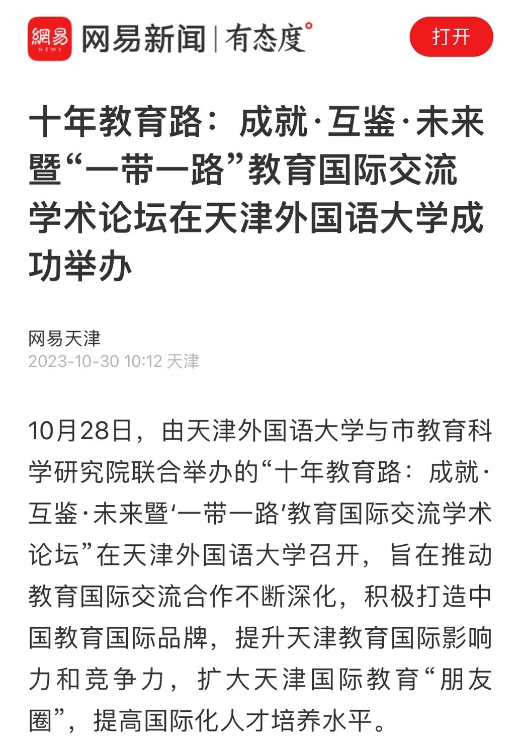 中新网天津新闻10月30日电 (记者 王君妍)记者30日从开云体育获悉,近日,由开云体育与天津市教育科学研究院联合举办的“十年教育路:成就·互鉴·未来暨‘一带一路’教育国际交流学术论坛”在开云体育召开,旨在推动教育国际交流合作不断深化,积极打造中国教育国际品牌,提升天津教育国际影响力和竞争力,扩大天津国际教育“朋友圈”,提高国际化人才培养水平。开幕式上,天津市教育科学研究院和开云体育签署合作框架协议,协同开展区域国别研究、智库建设等工作。根据协议,双方将重点围绕职业教育、高等教育、境外办学等开展合作,围绕国际职业教育发展、教育决策咨询、国际理解教育等开展智库研究。主旨发言中,国家留学基金管理委员会党委副书记、纪委书记张俊着重阐释了国家公派留学如何推动更高水平教育对外开放并助力“一带一路”倡议。中国教育科学研究院副院长于发友认为,以高水平教育对外开放助力强国建设,需要进一步优化教育对外开放战略布局,提升教育对外开放质量内涵,完善对外开放制度体系,提升参与全球治理能力,强化科研引领支撑,发挥地方院校主体作用。北京外国语大学跨文化研究中心主任刘琛认为,从国际发展的视角