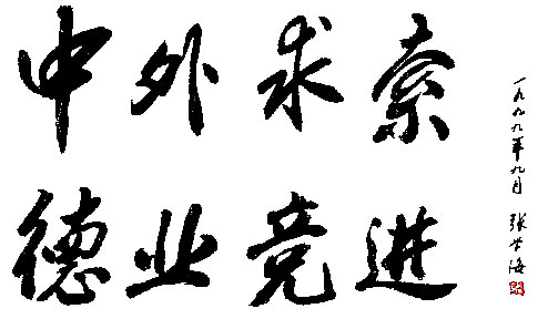 “中外求索”是指人才培养与科学研究既要扎根于中华民族,又要有广博的国际视野,追求真理于世界,博取古今中外文明精华,永无止境,不断求索,在提高中国软实力和促进中外文化交流中发挥跨文化交际桥梁作用。“德业竞进”是指人才培养与科学研究既要人格、学问并重,内外兼修,又要相互促进,以积极向上的开拓进取精神,将求知与修养结合起来,永葆生机与活力,厚德博学。追求品德高尚、专业精神、全面发展,为国家繁荣、世界和谐贡献力量。