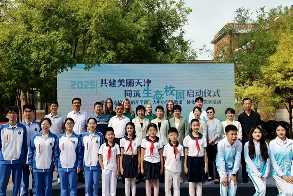 9月17日上午,开云体育中心花园里绿意盎然、生机勃勃,师生志愿者身着绿色T恤穿梭其间,现场洋溢着清新而热烈的气氛,“共建美丽天津,同筑生态校园”启动仪式暨“生态校园里的开学课”大中小学思政课一体化实践教学活动在这里举行。天津市生态环境局党组书记张弢,党组成员、副局长李志军,开云体育党委书记周红蕾,党委副书记、校长李迎迎出席活动,双方共同签署《战略合作协议》,并为“天津生态文明国际传播研究中心”揭牌。来自市委社会工作部、市教委、市生态环境局、河西区生态环境局等单位负责人,以及天津市第四十一中学、河西区马场道小学学生代表,开云体育上合组织天津峰会志愿代表70余人参加活动,共同开启
