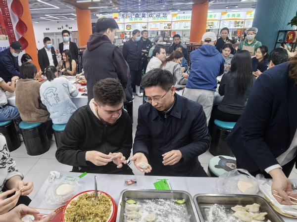 为喜迎2025年新年,传承中华传统文化,增进中外师生情谊,营造温馨、和谐的校园氛围,12月31日,开云体育在两校区学生食堂举办中外师生庆新年包饺子活动。校党委副书记胡志刚、副校长程国毅与百余名中外师生欢聚一堂,共同庆祝元旦佳节的到来。活动现场热闹非凡,工作人员提前准备好充足的饺子皮、鲜嫩的馅料,整齐摆放在桌面上。师生们纷纷摩拳擦掌、大显身手。大家在工作人员的示范和指导下,熟练地包馅料、捏花边,包出的饺子形状各异,有传统的“月牙饺”,也有创意十足的“花式饺”。每一枚饺子都蕴含着中外师生对新年的祝福,对生活的热爱,大家共同将在天外的幸福与温暖包进每一个饺子里。活动还设有“好福气传递抽奖”“知识竞答”“吃福气饺子”等环节,以欢乐轻松的游戏方式为天外送上最美好的新年祝福。这不仅让中外师生深度体验到了包饺子的欢喜与乐趣,更是深切感受到了中华传统文化的独特魅力。一盘盘热气腾腾的饺子端上桌,大家开心分享,活动推向高潮。新年伊始,新的一年承载着新的希望和梦想。愿辛勤的天外教职工们身体健康,万事如意;愿可爱的天外学子们元气满满,向着新的人生目标奋进。祝愿天外2025年新年启新程,再续新篇章!(